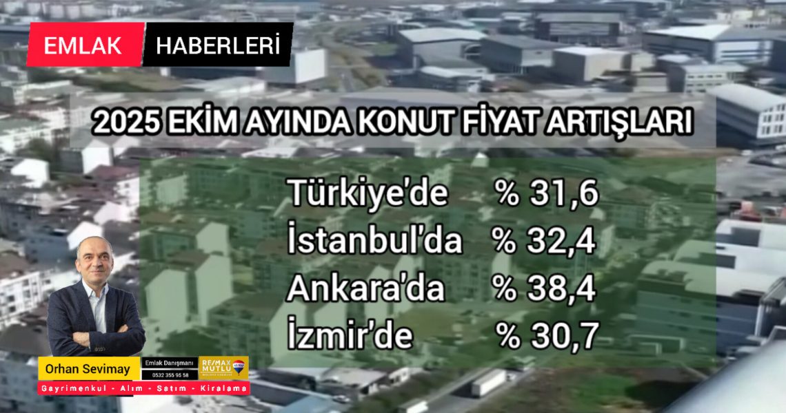 2025 yılı Ekim ayında bir önceki aya göre yüzde 1,6 oranında artan konut fiyatları, bir önceki yılın aynı ayına göre yüzde 31,6 oranında artmıştır.