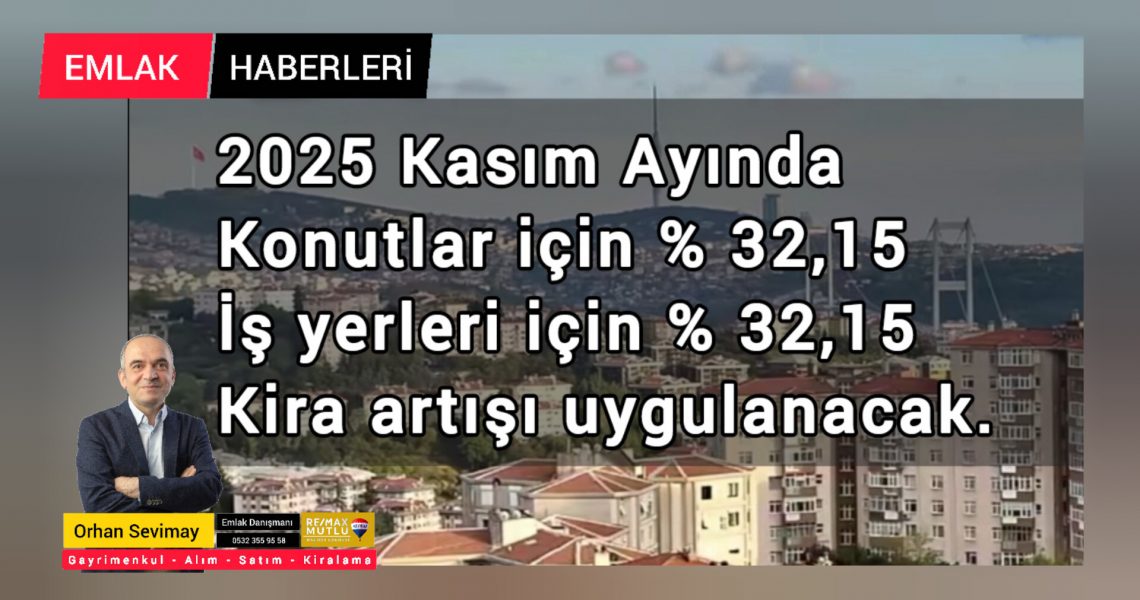 2025 yılı Ekim ayında bir önceki aya göre %2,55 artış, bir önceki yılın Aralık ayına göre %28,63 artış, bir önceki yılın aynı ayına göre % 32,87 artış ve on iki aylık ortalamalara göre % 37,15 artış olarak gerçekleşti. Türkiye’de 2025 Kasım Ayında işyeri ve konutlar için % 32,15 oranında kira artışı uygulanacak.