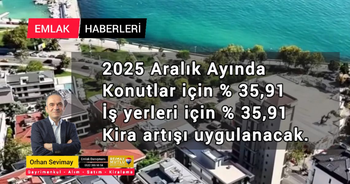 Türkiye’de TÜFE’deki değişim 2025 yılı Kasım ayında bir önceki aya göre % 0,87 artış, bir önceki yılın Aralık ayına göre %29,74 artış, bir önceki yılın aynı ayına göre %31,07 artış ve on iki aylık ortalamalara göre % 35,91 artış olarak gerçekleşti. Türkiye’de Aralık Ayında iş yerleri ve konutlar için %35,91 kira artışı uygulanacak.