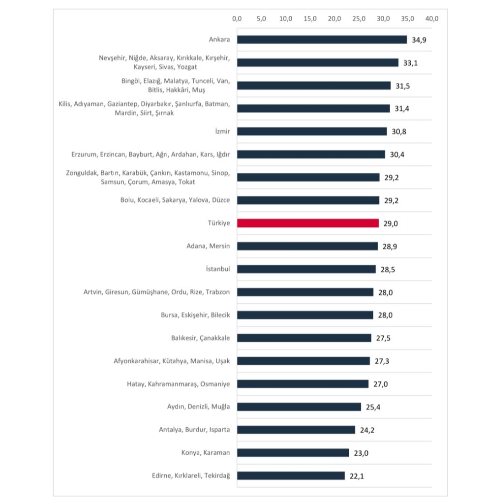 İzmir’de sırasıyla yüzde 28,5, 34,9 ve 30,8 oranlarında artış göstermiştir.