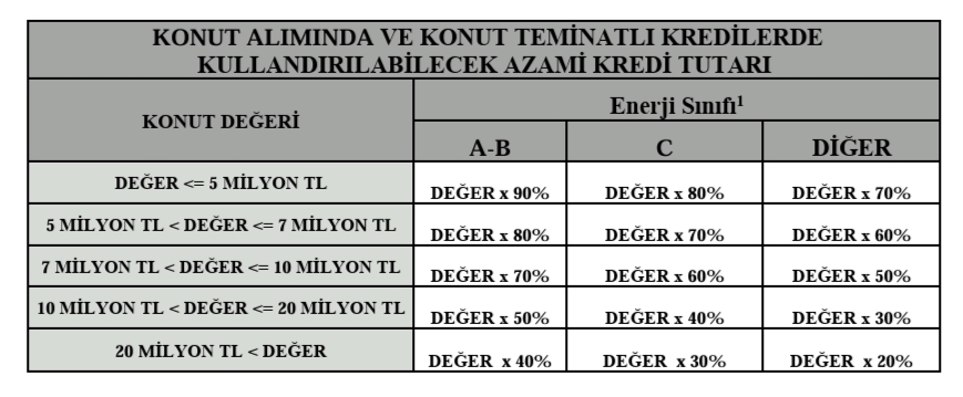 2 Şubat 2026BDDK’nın Kurul Kararı kapsamında, bankaların kullandırabileceği konut kredilerinde kredi-değer oranları yeniden düzenlendi. Kredi tutarı, konutun değeri ve enerji sınıfına göre farklı oranlarda belirlenecek.Yeni kararlarla konut kredilerinde sıfır-ikinci el ayrımı kaldırılırken, kredi oranları doğrudan konut bedeline göre belirlendi.