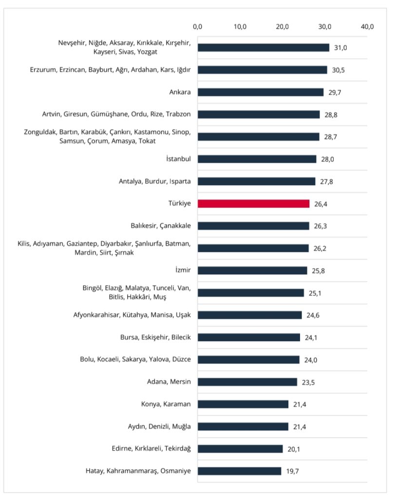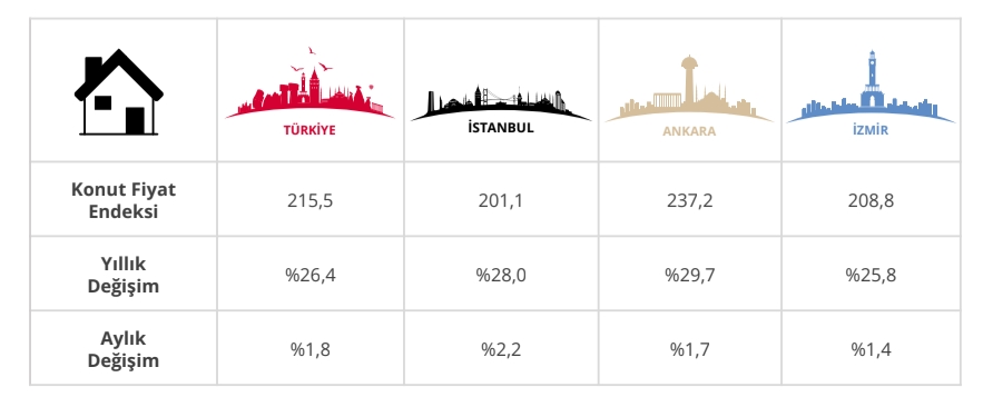İstanbul: Aylık %2,2 ile en yüksek aylık artışın görüldüğü şehir olurken, yıllık bazda fiyatlar %28,0 oranında yükseldi.
