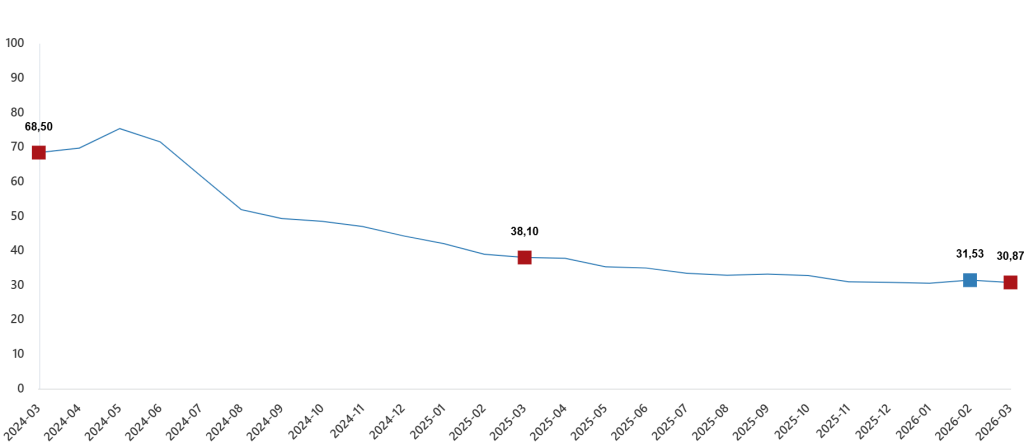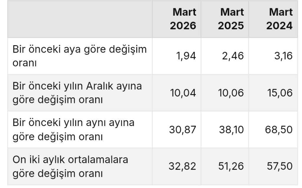 3 Nisan 20262026 yılı Mart ayında bir önceki aya göre %1,94 artış, bir önceki yılın Aralık ayına göre %10,04 artış, bir önceki yılın aynı ayına göre %30,87 artış ve on iki aylık ortalamalara göre %32,82 artış olarak gerçekleşti. Türkiye’de 2026 Nisan ayında iş yerleri ve konutlar için kira artışı % 32,82 olarak uygulanacak.